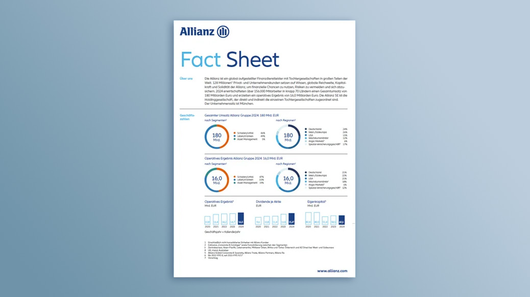 Hier finden Sie eine Übersicht zu den Kennzahlen der Allianz Gruppe und zur Allianz Aktie.