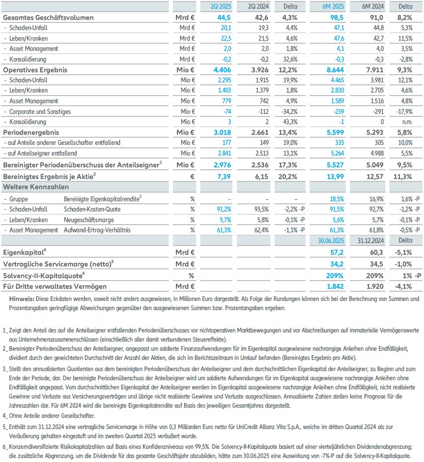 Allianz Gruppe - Eckdaten für das 2. Quartal und das 1. Halbjahr 2025