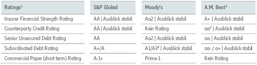 1 Einschließlich der Ratings für von Allianz Finance II B.V. und Allianz Finance Corporation ausgegebene Wertpapiere.