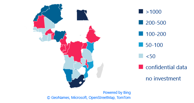 German investment is also very concentrated in a few African countries, mainly South Africa and Egypt, followed by Nigeria, Morocco, Tunisia and Algeria. More than half of Germany's direct investment flows into South Africa, where more than 400 German companies employ about 65,000 people.