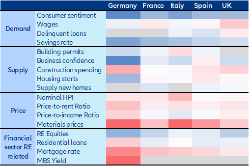 Heatmap of the yearly changes in key variables for residential real estate. Latest available date for each indicator (z-scores)*
